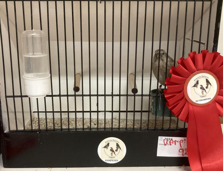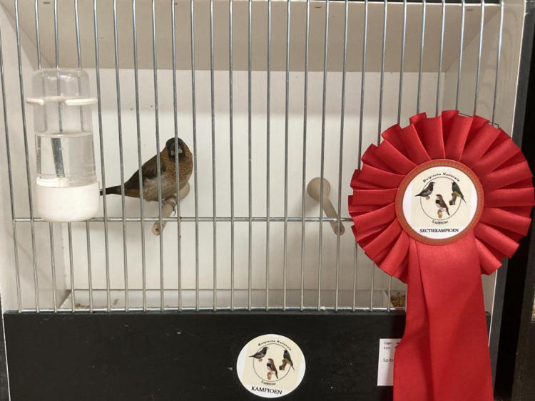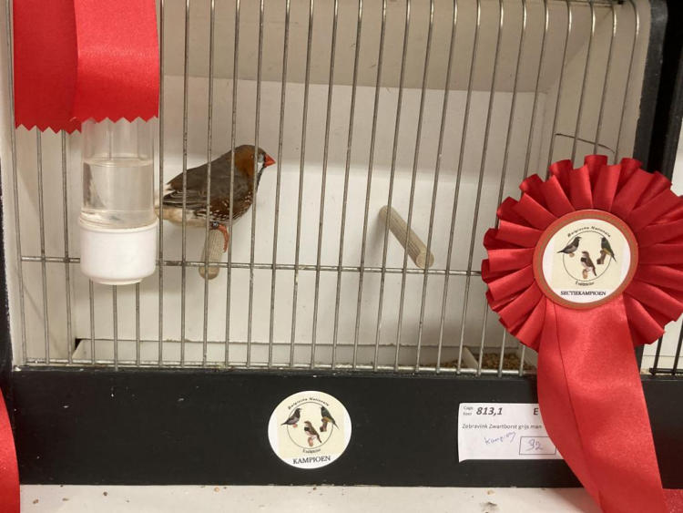 Etienne De Bock, één van bezielers van BNEC, behaalde met een zebravink zwartborst grijs de beste vogel van deze sectie.