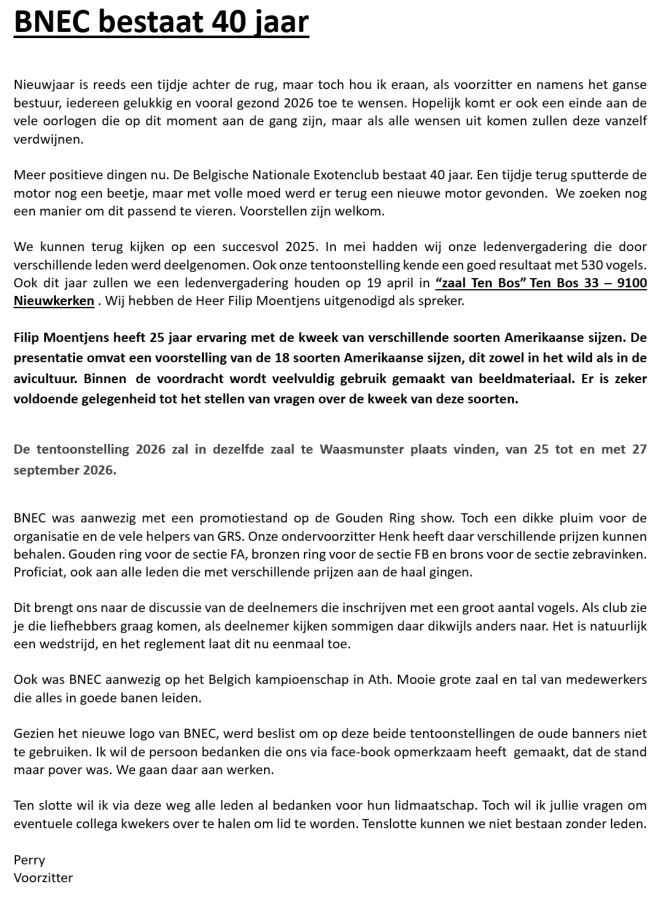 Het lidgeld moet dan reeds betaald worden, samen met de ringenbestelling.